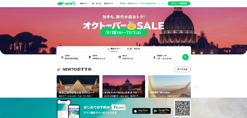NEWT は、株式会社令和トラベルが運営する旅行予約アプリ/オンライン旅行プラットフォームです。
