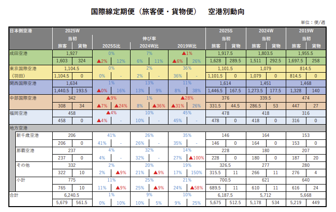では、これほどの観光客の動きを支える航空便の就航状況についてみてみましょう。