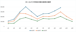 ・10月:ヨーロッパ各国で「秋休み(Autumn break)」や英国のハーフターム休暇が設定される時期にあたり、旅行需要が高まる傾向にあります。また夏のピークシーズンに比べ航空券価格が落ち着くことや、日本の気候が安定していることも後押しとなり、長距離旅行先として日本が選ばれやすいタイミングです。