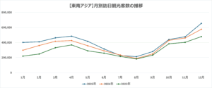 韓国は訪日観光客の約4分の1近くを占める重要な市場で、冬季(12月〜1月)と秋の連休期に訪日数が増える傾向があります。